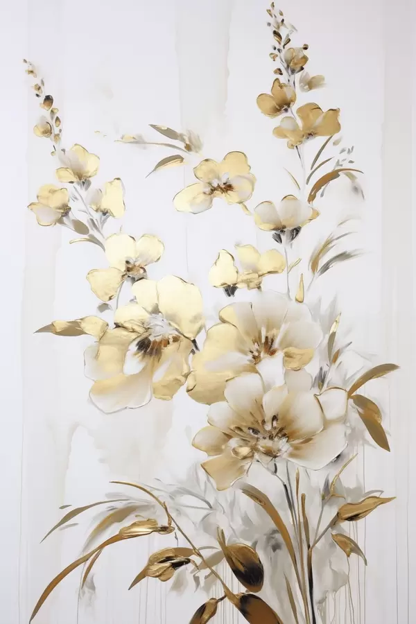 Poster Fleurs et feuilles jaunes texturées sur fond blanc, avec des coups de pinceau délicats Nr f47016