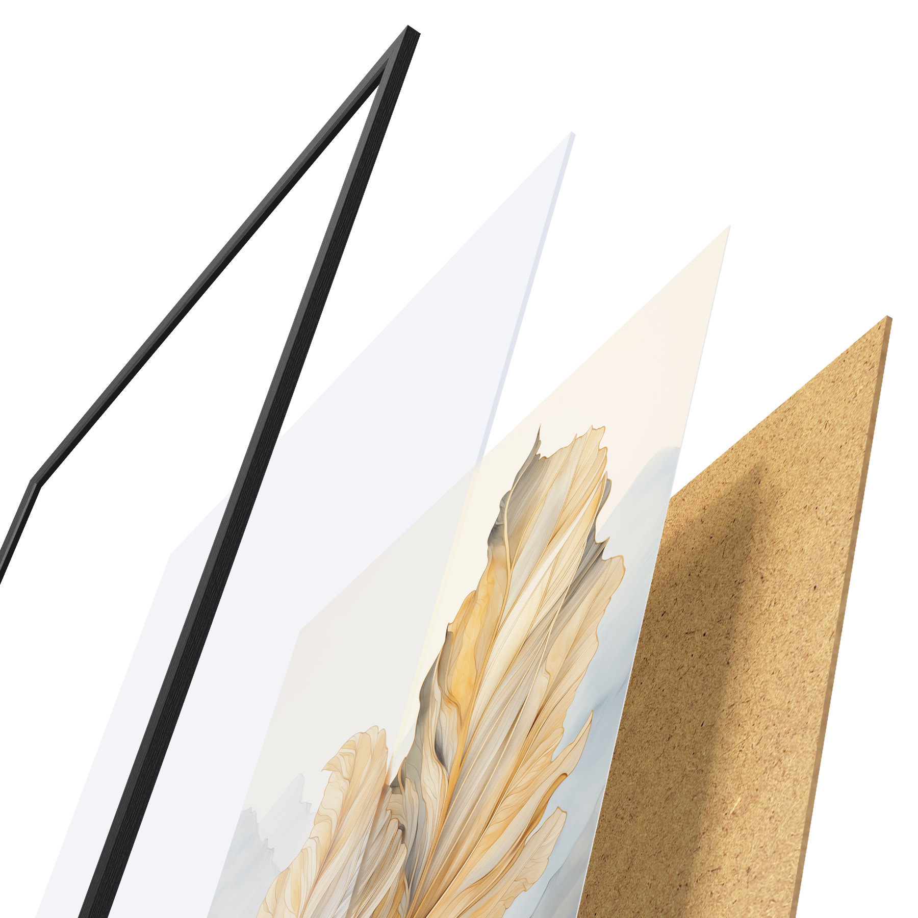 L’affiche encadrée est composée d’un cadre, d’un plexiglas, d’une image imprimée et d’un support en aggloméré. Elle est prête à être accrochée au mur grâce aux fixations situées à l’arrière.