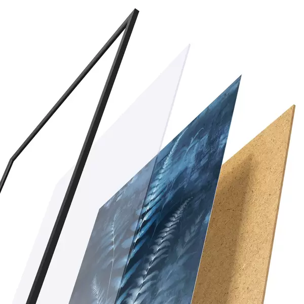 L’affiche encadrée est composée d’un cadre, d’un plexiglas, d’une image imprimée et d’un support en aggloméré. Elle est prête à être accrochée au mur grâce aux fixations situées à l’arrière.