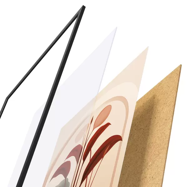 L’affiche encadrée est composée d’un cadre, d’un plexiglas, d’une image imprimée et d’un support en aggloméré. Elle est prête à être accrochée au mur grâce aux fixations situées à l’arrière.