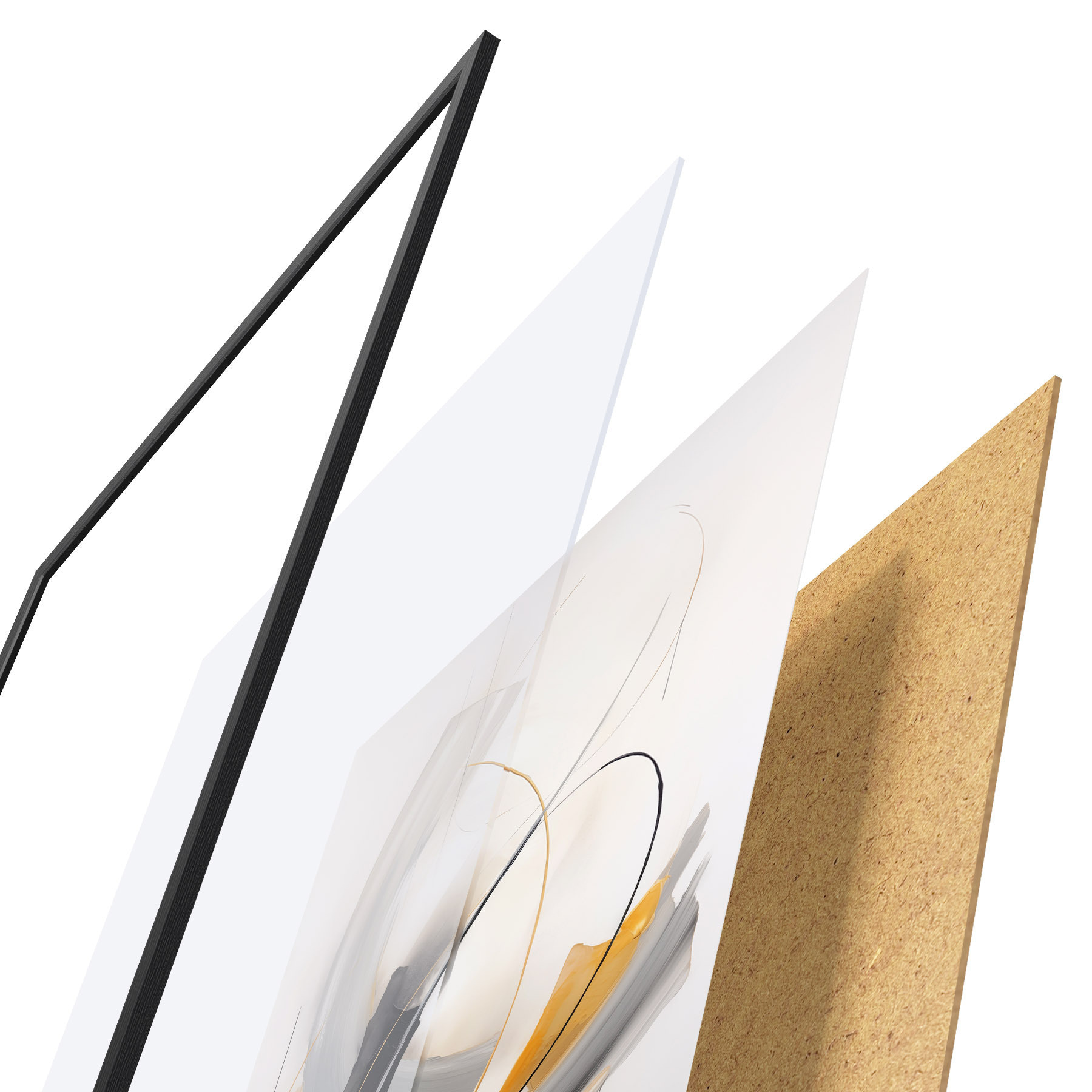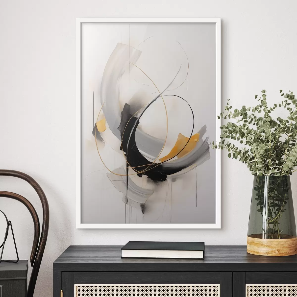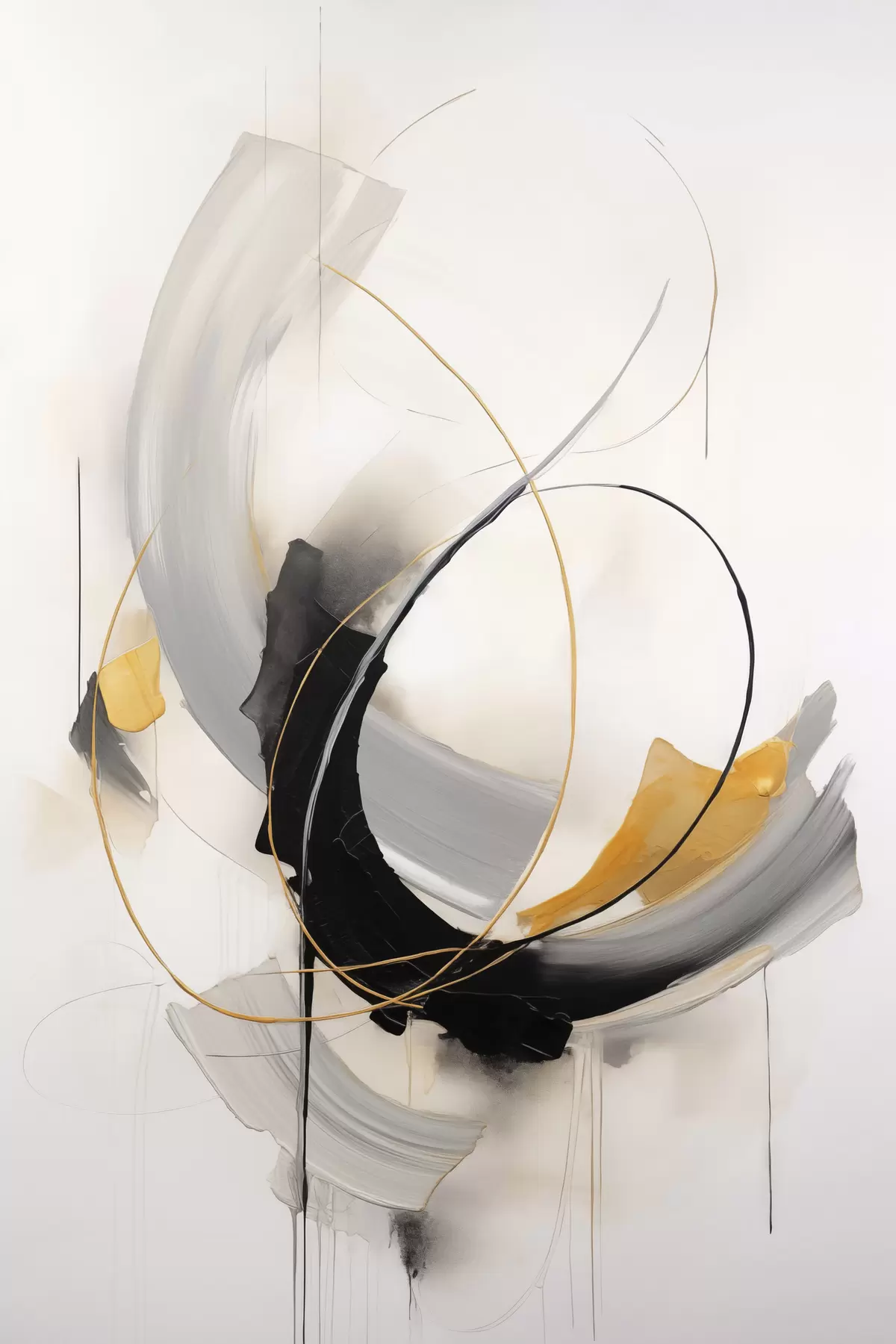 Poster Peinture abstraite avec des touches de jaune, noir et blanc, lignes dynamiques Nr f47035