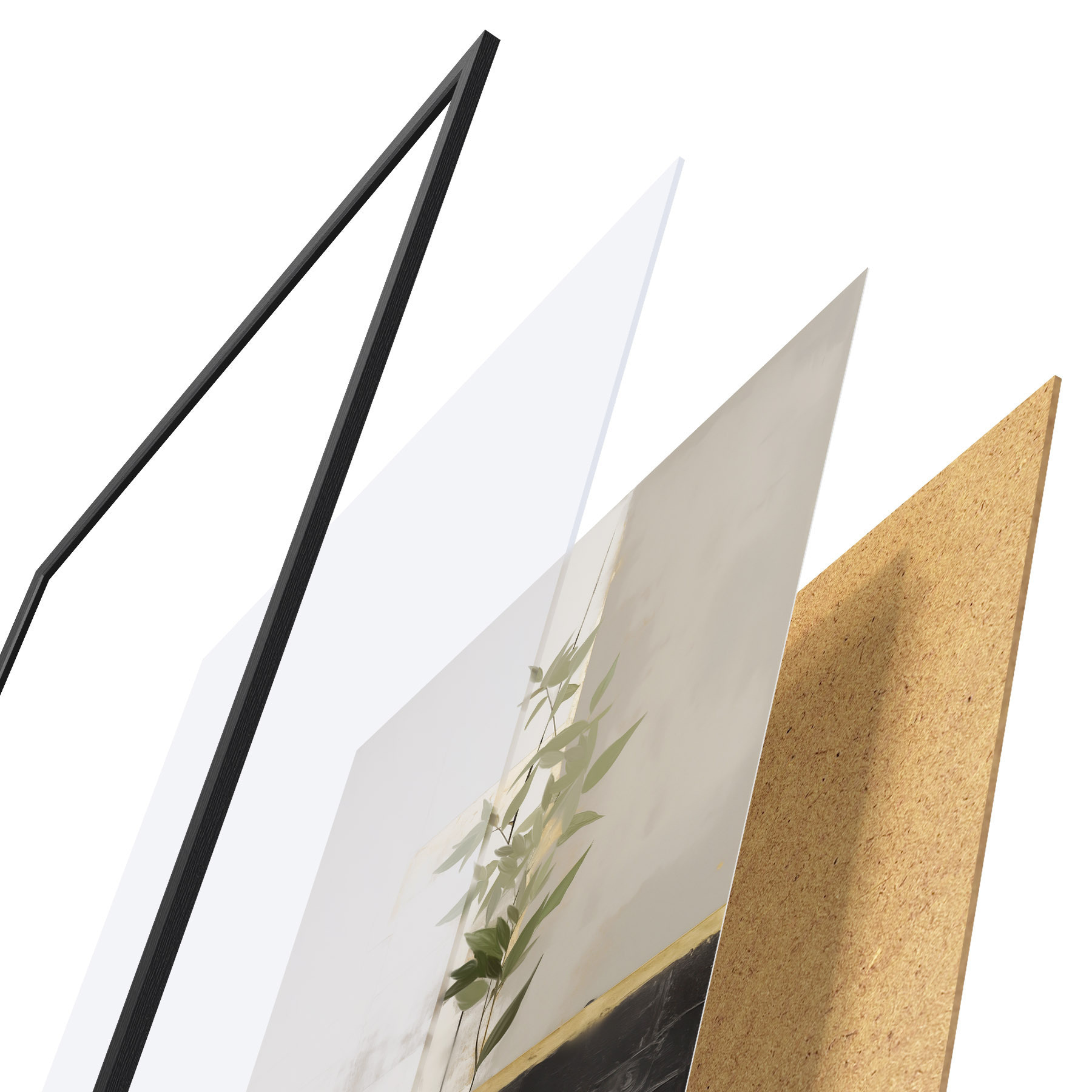 L’affiche encadrée est composée d’un cadre, d’un plexiglas, d’une image imprimée et d’un support en aggloméré. Elle est prête à être accrochée au mur grâce aux fixations situées à l’arrière.