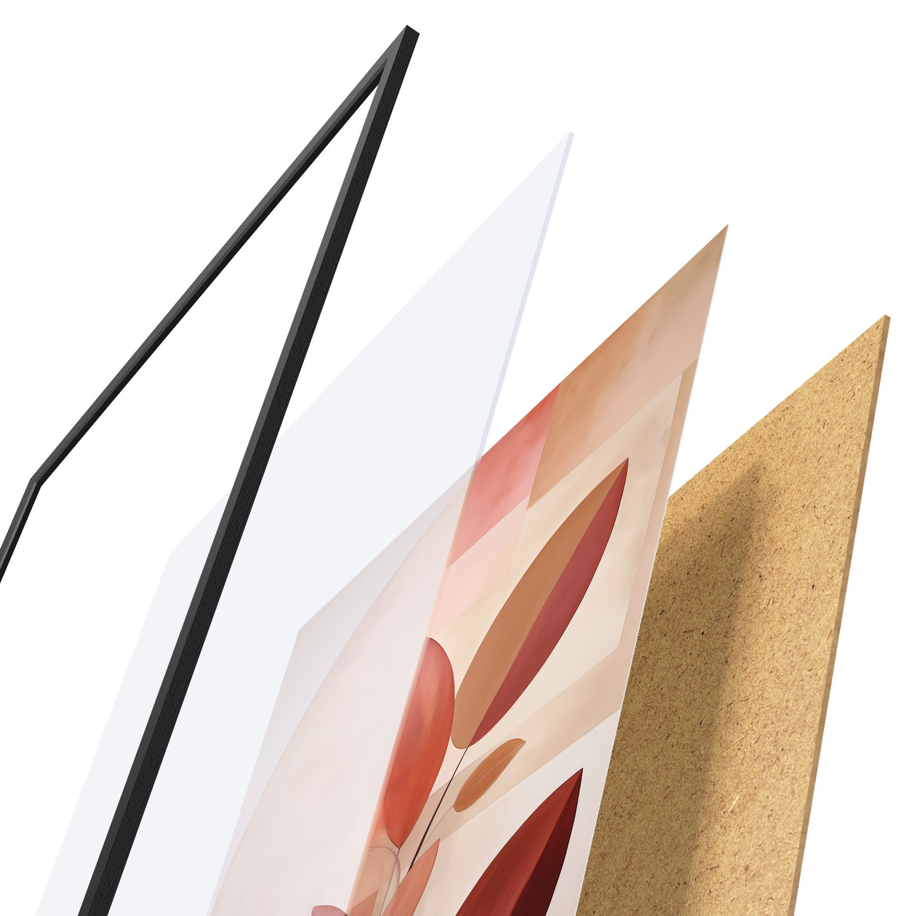 Poster Plante abstraite aux feuilles rouges sur fond de formes géométriques et de couleurs douces et discrètes f47041