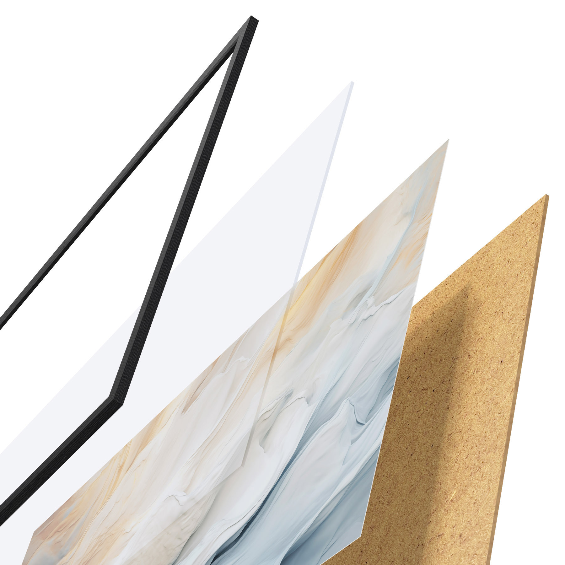 L’affiche encadrée est composée d’un cadre, d’un plexiglas, d’une image imprimée et d’un support en aggloméré. Elle est prête à être accrochée au mur grâce aux fixations situées à l’arrière.