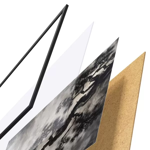 L’affiche encadrée est composée d’un cadre, d’un plexiglas, d’une image imprimée et d’un support en aggloméré. Elle est prête à être accrochée au mur grâce aux fixations situées à l’arrière.