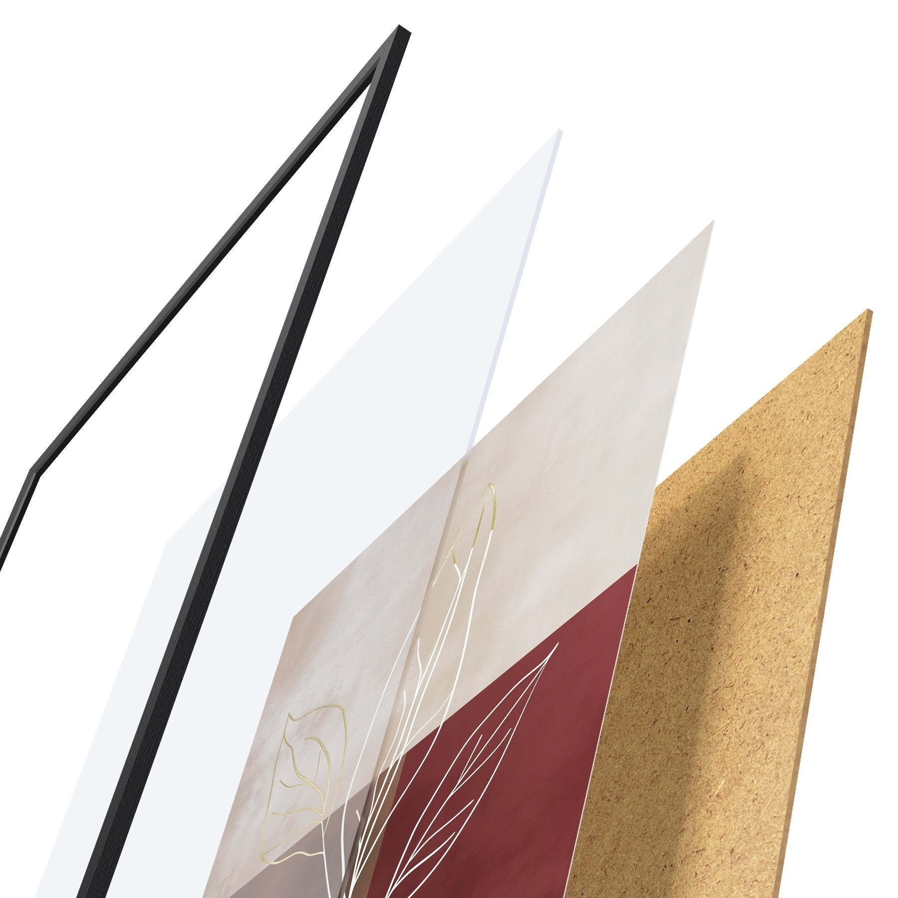 L’affiche encadrée est composée d’un cadre, d’un plexiglas, d’une image imprimée et d’un support en aggloméré. Elle est prête à être accrochée au mur grâce aux fixations situées à l’arrière.