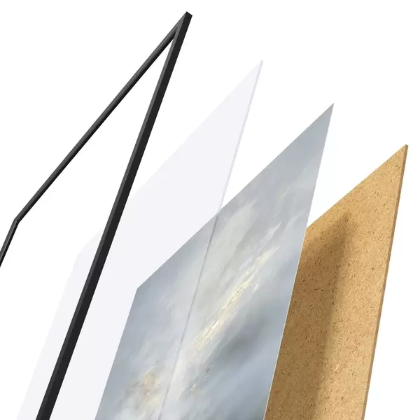 L’affiche encadrée est composée d’un cadre, d’un plexiglas, d’une image imprimée et d’un support en aggloméré. Elle est prête à être accrochée au mur grâce aux fixations situées à l’arrière.
