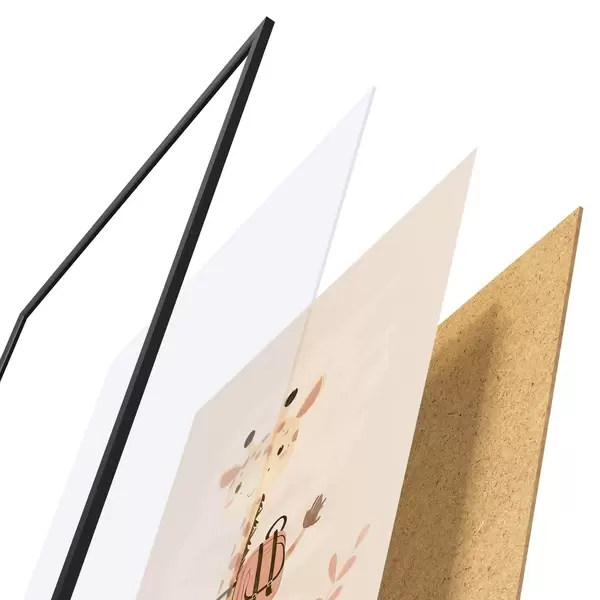 L’affiche encadrée est composée d’un cadre, d’un plexiglas, d’une image imprimée et d’un support en aggloméré. Elle est prête à être accrochée au mur grâce aux fixations situées à l’arrière.