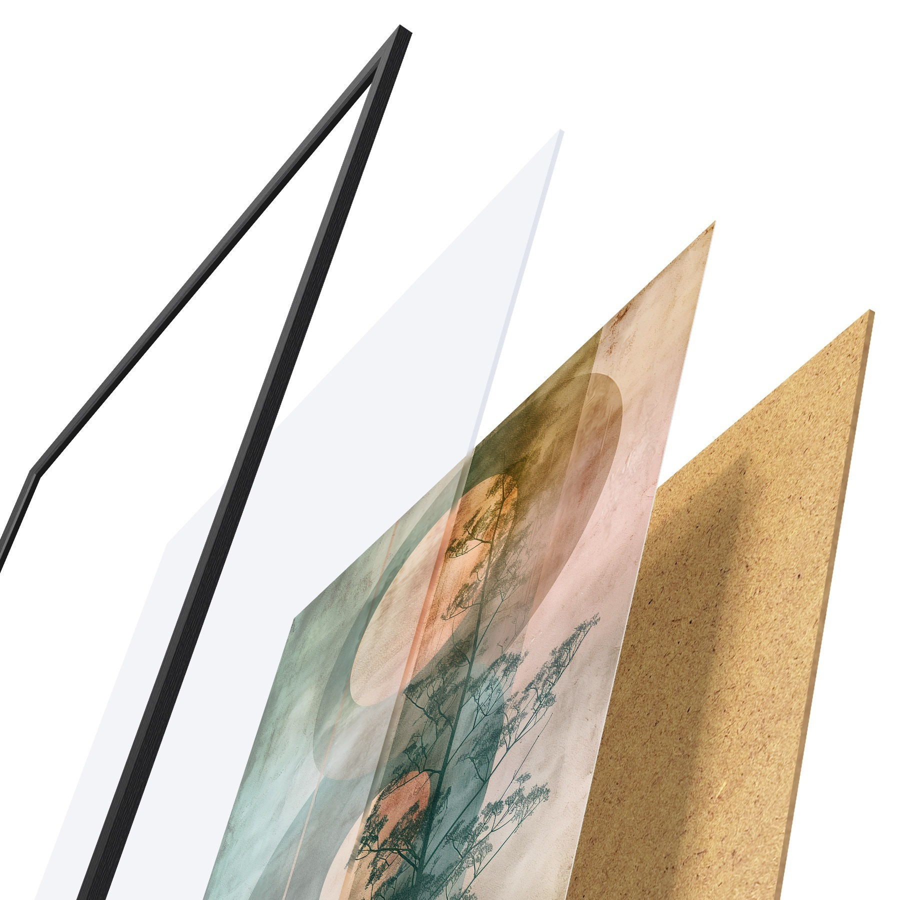L’affiche encadrée est composée d’un cadre, d’un plexiglas, d’une image imprimée et d’un support en aggloméré. Elle est prête à être accrochée au mur grâce aux fixations situées à l’arrière.