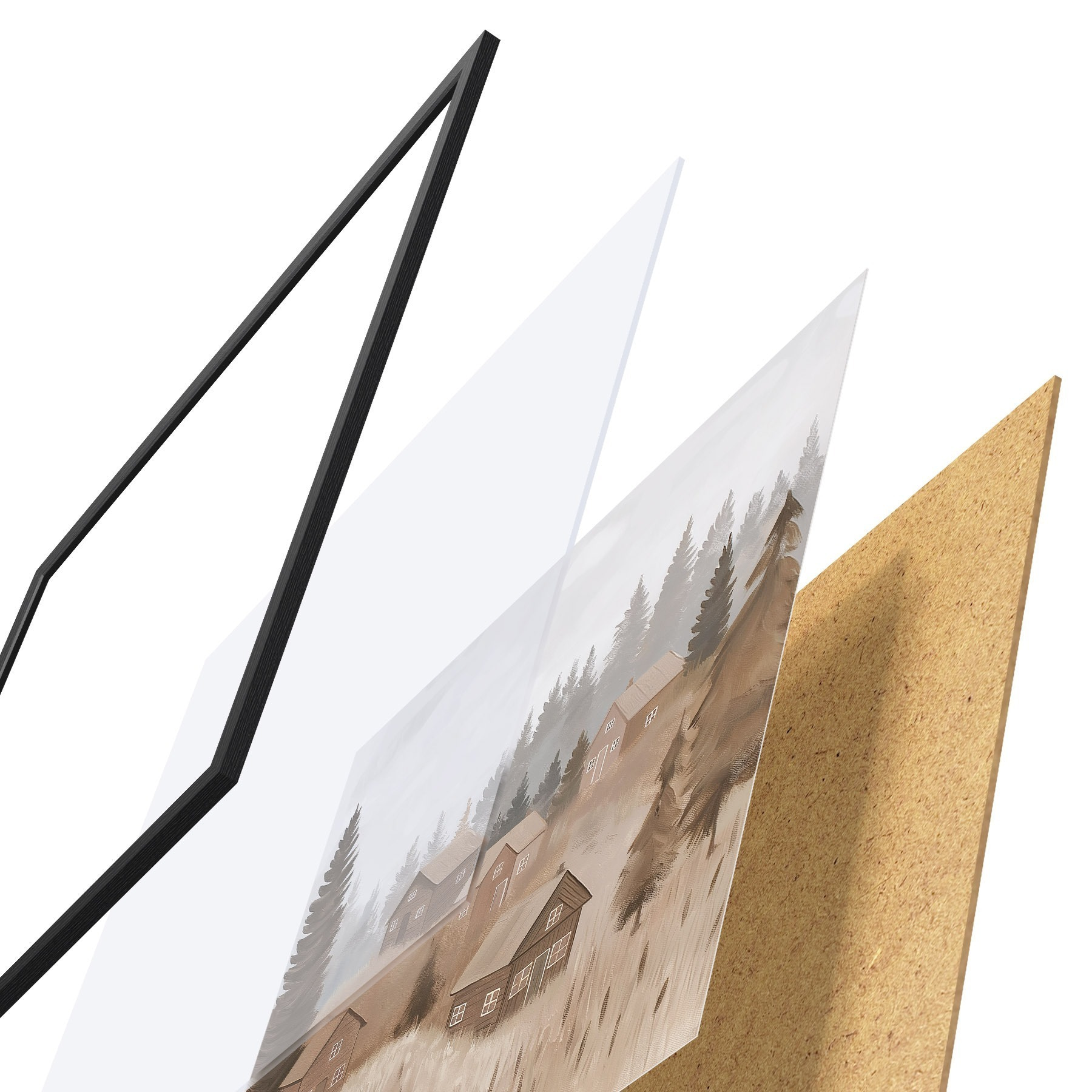 L’affiche encadrée est composée d’un cadre, d’un plexiglas, d’une image imprimée et d’un support en aggloméré. Elle est prête à être accrochée au mur grâce aux fixations situées à l’arrière.