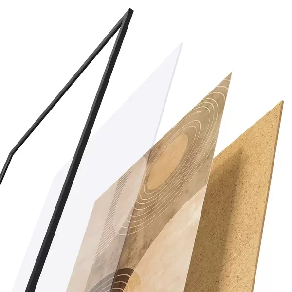L’affiche encadrée est composée d’un cadre, d’un plexiglas, d’une image imprimée et d’un support en aggloméré. Elle est prête à être accrochée au mur grâce aux fixations situées à l’arrière.
