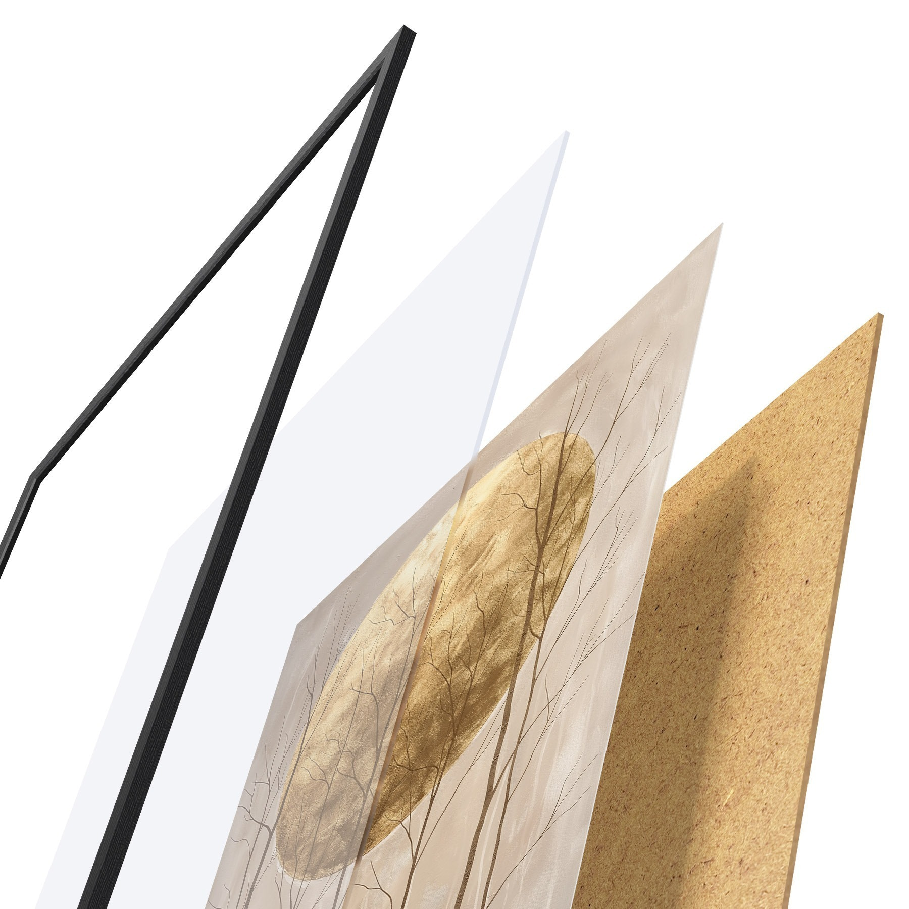 L’affiche encadrée est composée d’un cadre, d’un plexiglas, d’une image imprimée et d’un support en aggloméré. Elle est prête à être accrochée au mur grâce aux fixations situées à l’arrière.