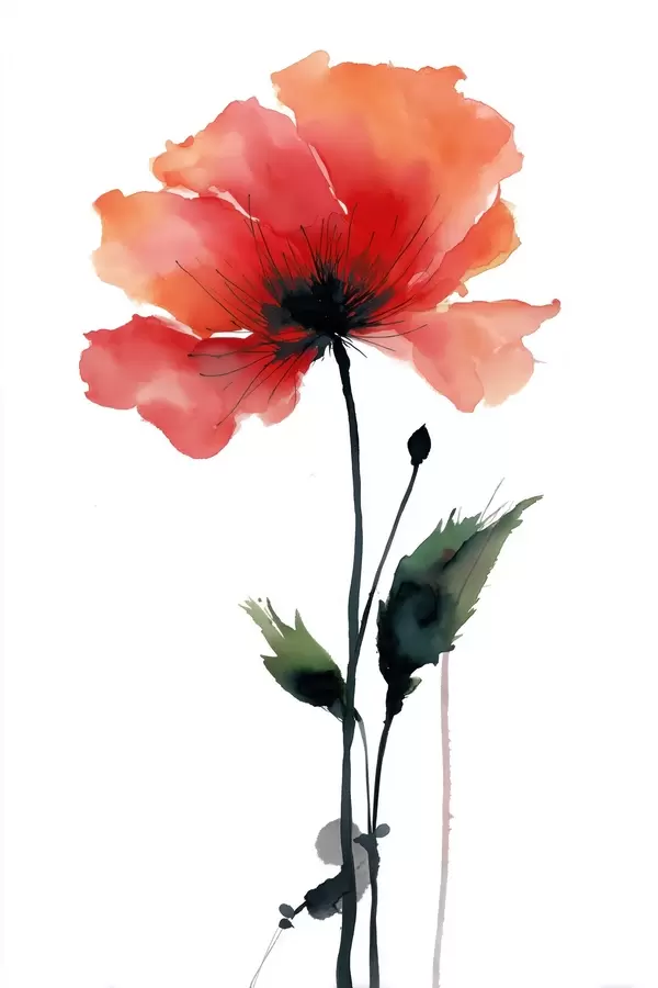 Poster Coquelicot aquarellé dans une palette apaisante avec des transitions de couleurs douces Nr f47087