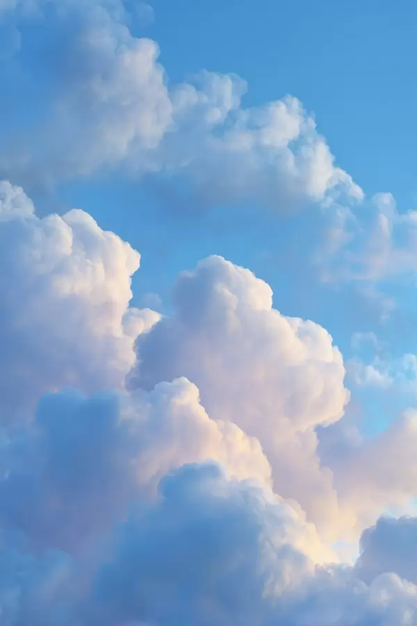 Poster Des nuages volumineux dans une palette de couleurs douces bleues et roses, dans un style graphique numérique photoréaliste. Nr f47088