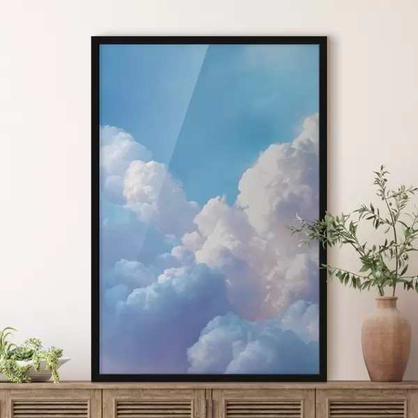 Poster Paysage céleste pittoresque avec d'énormes nuages blancs dans un style graphique numérique f47089