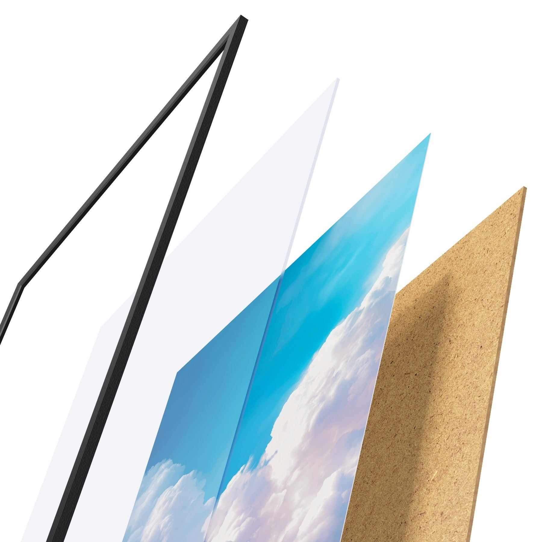 L’affiche encadrée est composée d’un cadre, d’un plexiglas, d’une image imprimée et d’un support en aggloméré. Elle est prête à être accrochée au mur grâce aux fixations situées à l’arrière.