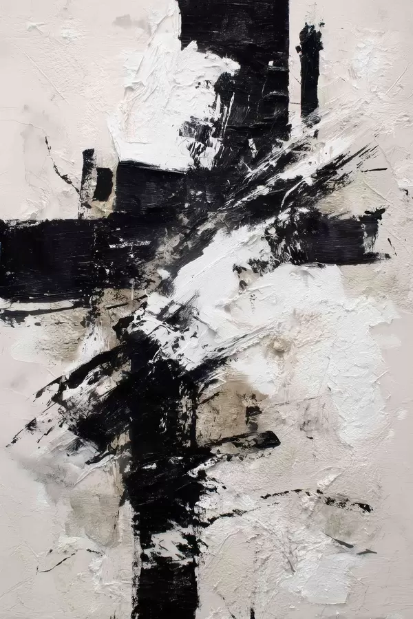 Poster Intérieur moderne abstrait avec des lignes chaotiques et des coups de pinceau volumétriques dans un style de peinture sur toile. f47090