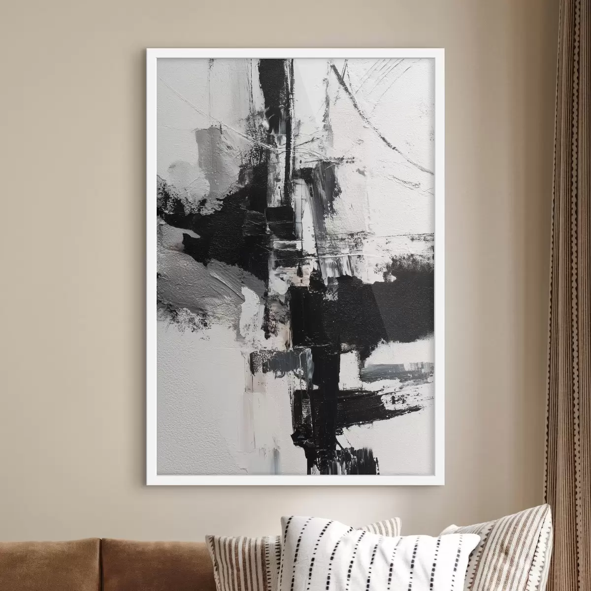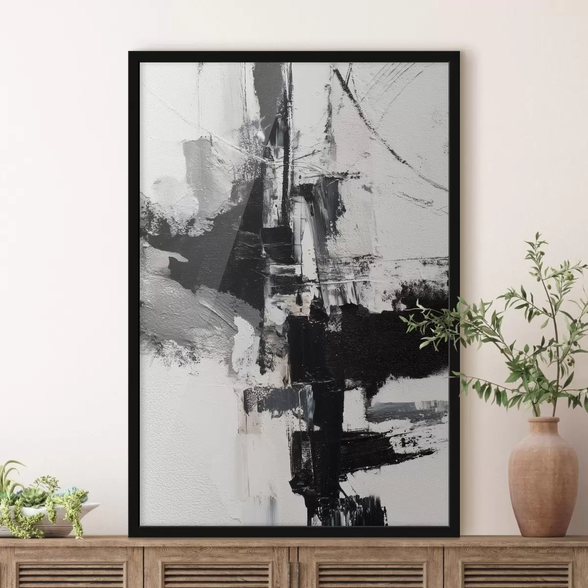 Poster Illustration texturée avec des coups de pinceau contrastés noirs et gris dans un style peinture à l'huile. f47091