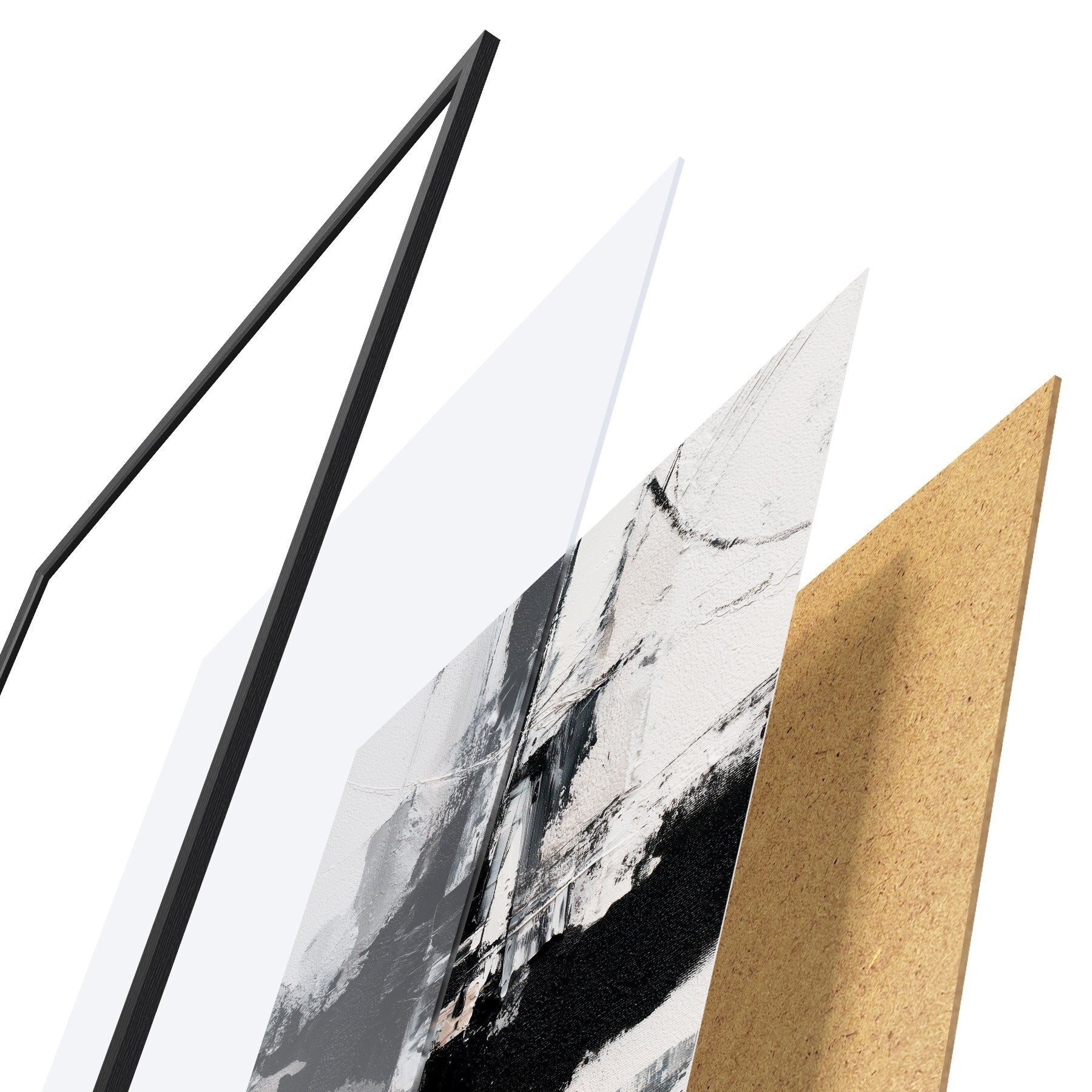 L’affiche encadrée est composée d’un cadre, d’un plexiglas, d’une image imprimée et d’un support en aggloméré. Elle est prête à être accrochée au mur grâce aux fixations situées à l’arrière.