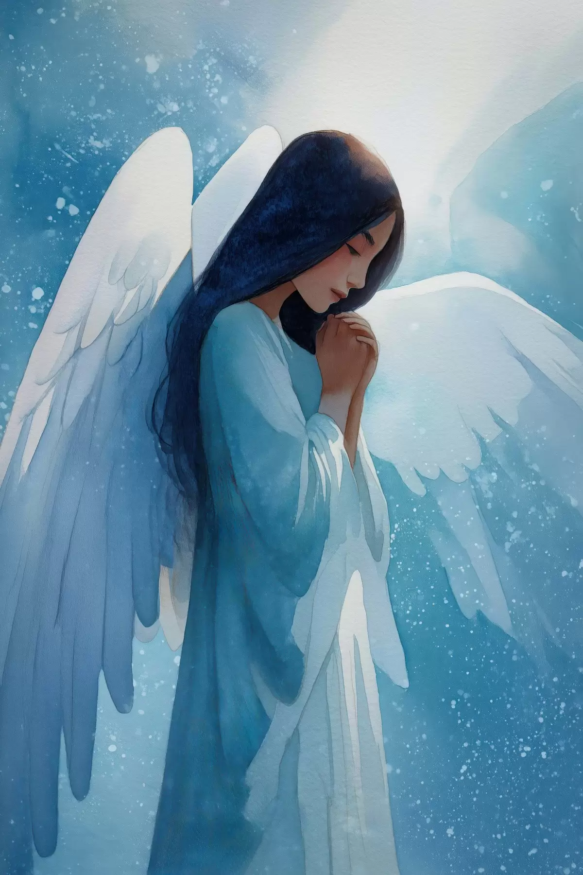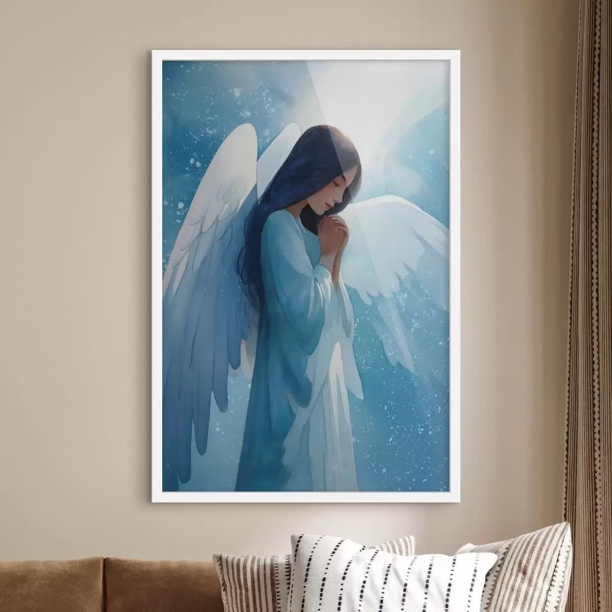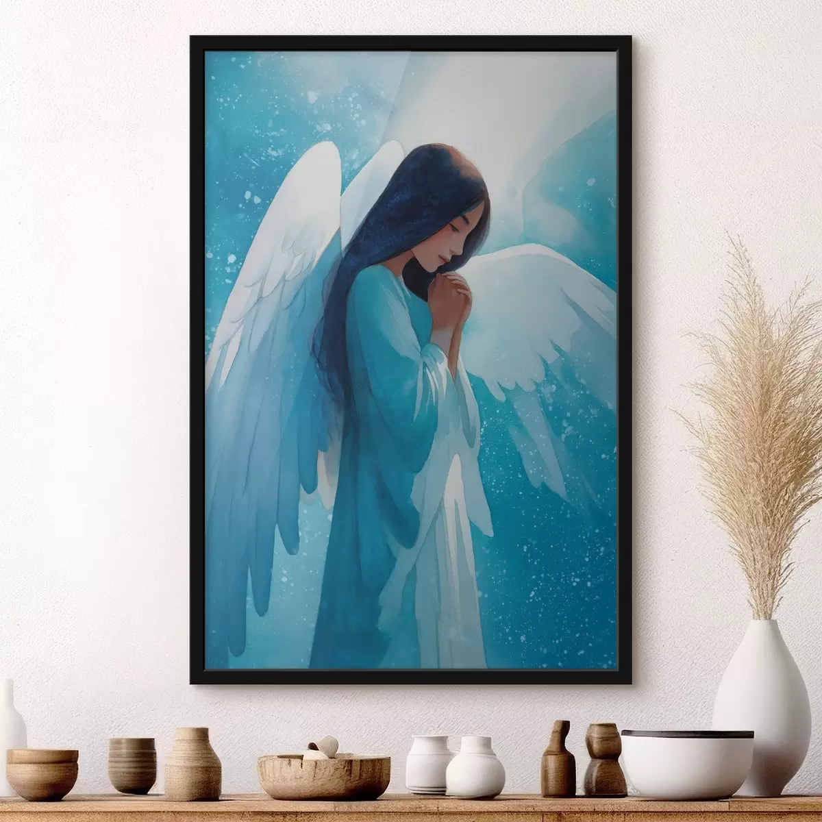 Poster Harmonie aquarelle : ange dans la lumière sur fond bleu Nr f47094