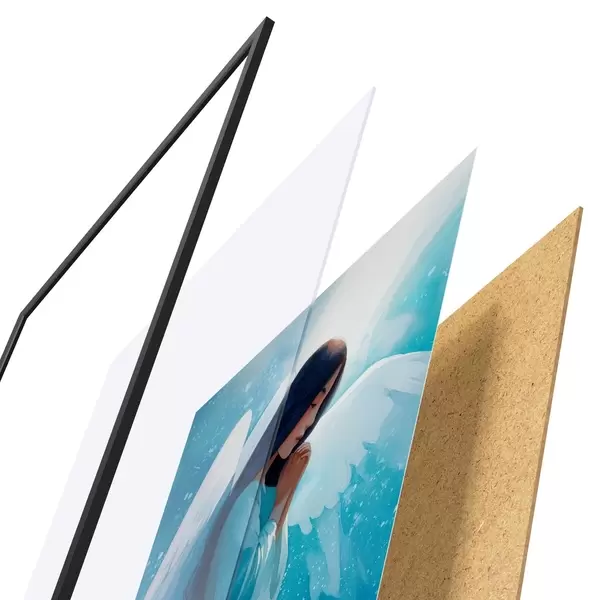 L’affiche encadrée est composée d’un cadre, d’un plexiglas, d’une image imprimée et d’un support en aggloméré. Elle est prête à être accrochée au mur grâce aux fixations situées à l’arrière.