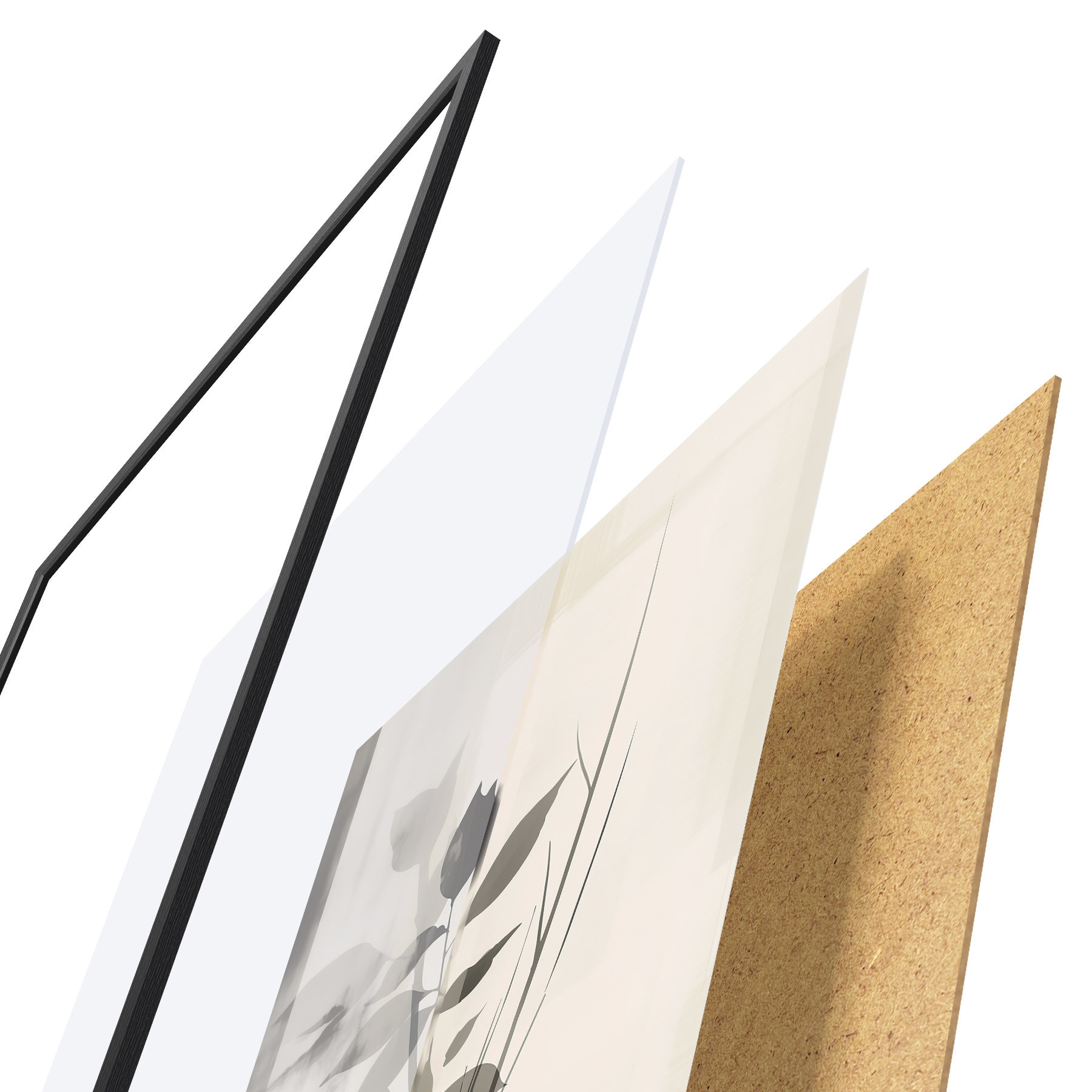 L’affiche encadrée est composée d’un cadre, d’un plexiglas, d’une image imprimée et d’un support en aggloméré. Elle est prête à être accrochée au mur grâce aux fixations situées à l’arrière.