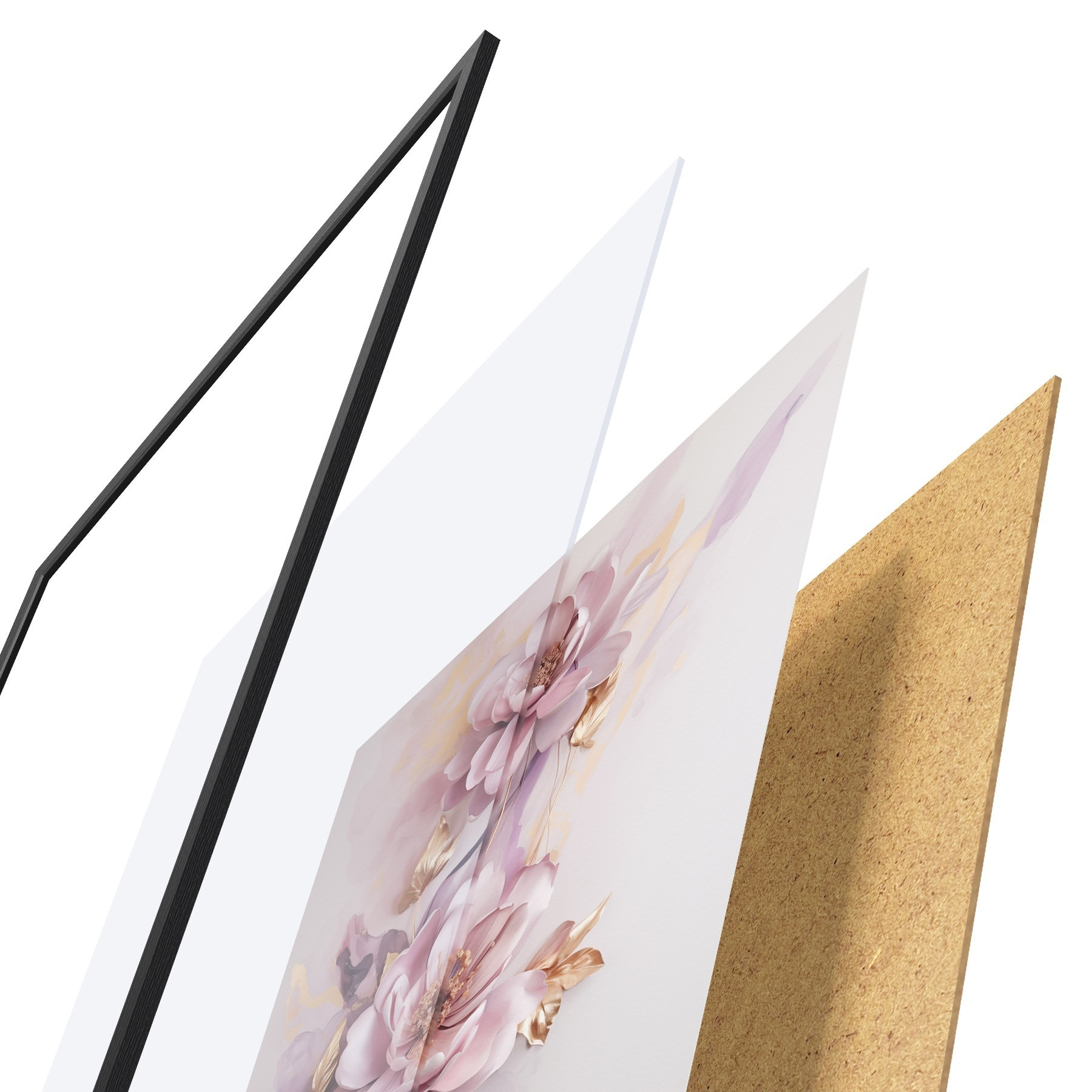 L’affiche encadrée est composée d’un cadre, d’un plexiglas, d’une image imprimée et d’un support en aggloméré. Elle est prête à être accrochée au mur grâce aux fixations situées à l’arrière.