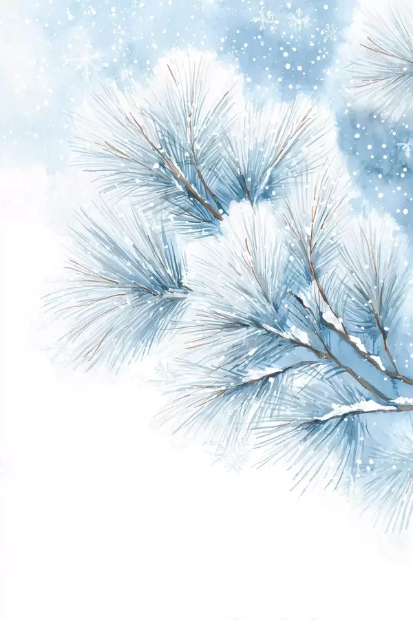 Poster branche de pin enneigée peinte à l'aquarelle Nr f47114