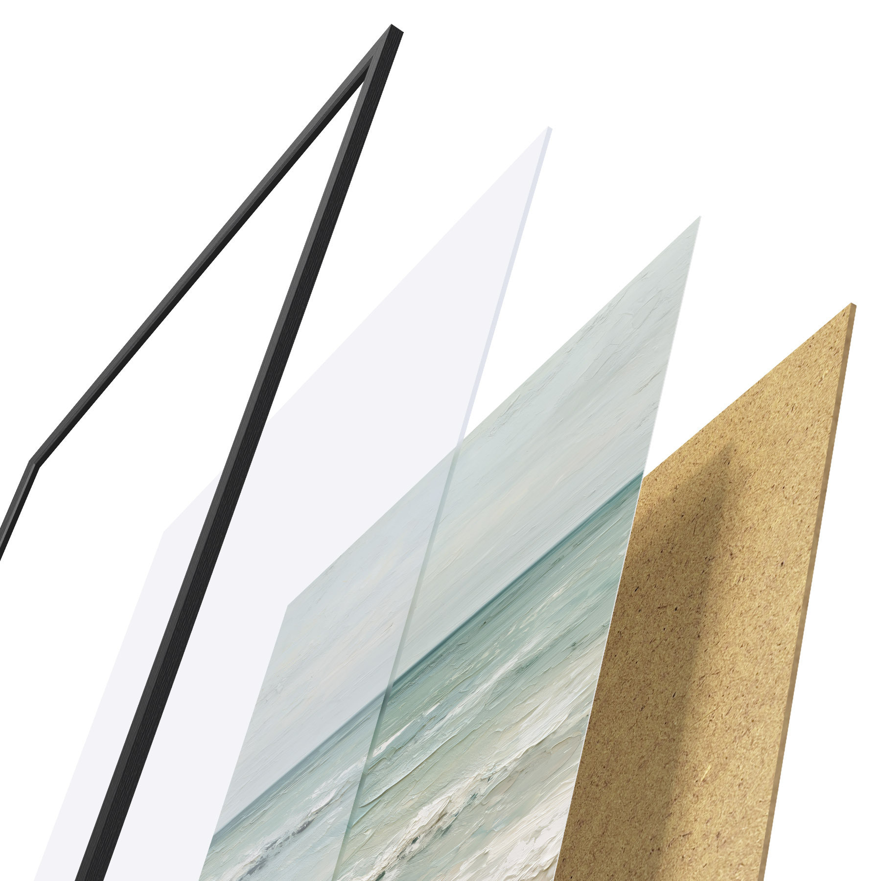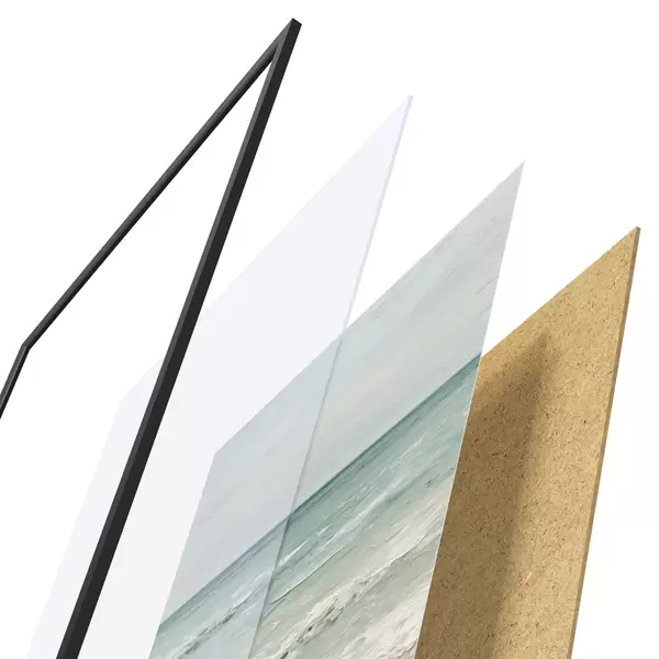 L’affiche encadrée est composée d’un cadre, d’un plexiglas, d’une image imprimée et d’un support en aggloméré. Elle est prête à être accrochée au mur grâce aux fixations situées à l’arrière.
