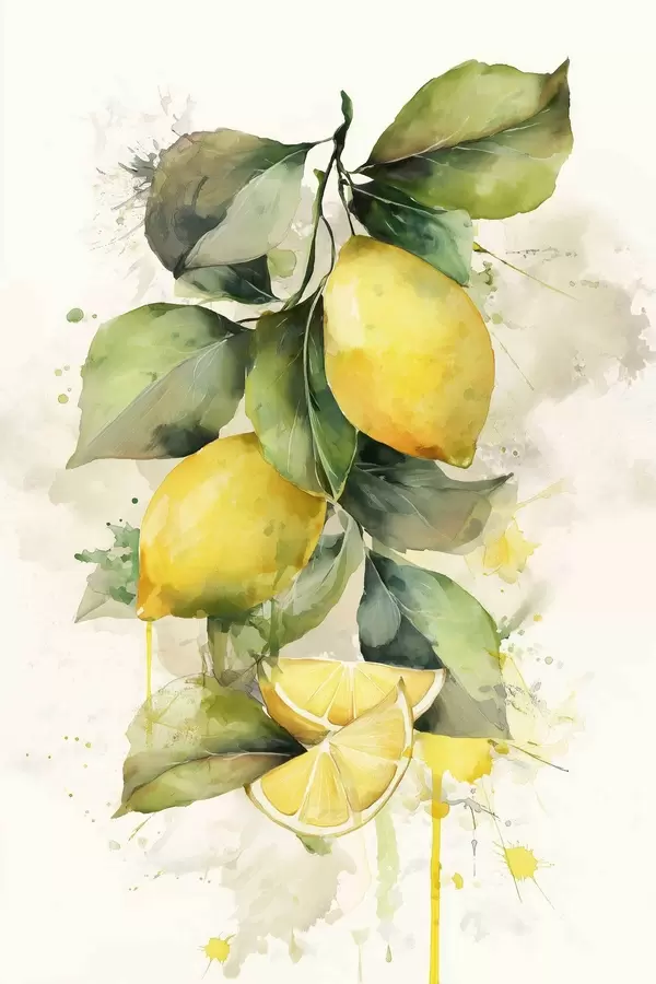 Poster branche de style aquarelle avec des citrons Nr f47124