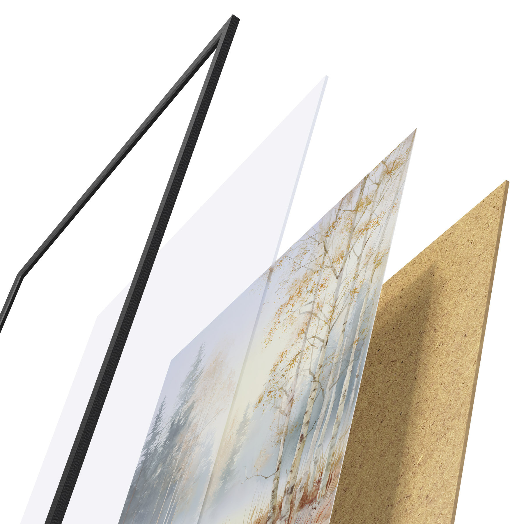 L’affiche encadrée est composée d’un cadre, d’un plexiglas, d’une image imprimée et d’un support en aggloméré. Elle est prête à être accrochée au mur grâce aux fixations situées à l’arrière.