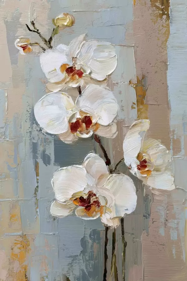 Poster fleurs d'orchidées blanches dans le style de la peinture à l'huile Nr f47132
