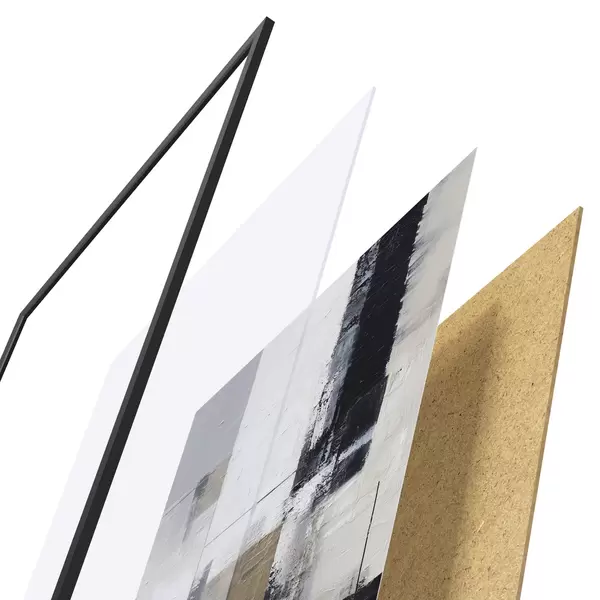 L’affiche encadrée est composée d’un cadre, d’un plexiglas, d’une image imprimée et d’un support en aggloméré. Elle est prête à être accrochée au mur grâce aux fixations situées à l’arrière.