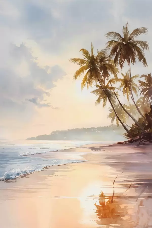 Poster plage au coucher du soleil sur une île, style aquarelle Nr f47135