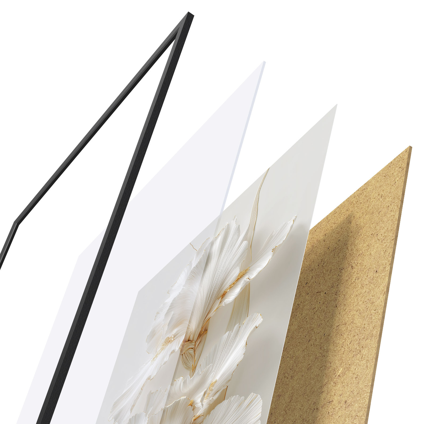 L’affiche encadrée est composée d’un cadre, d’un plexiglas, d’une image imprimée et d’un support en aggloméré. Elle est prête à être accrochée au mur grâce aux fixations situées à l’arrière.