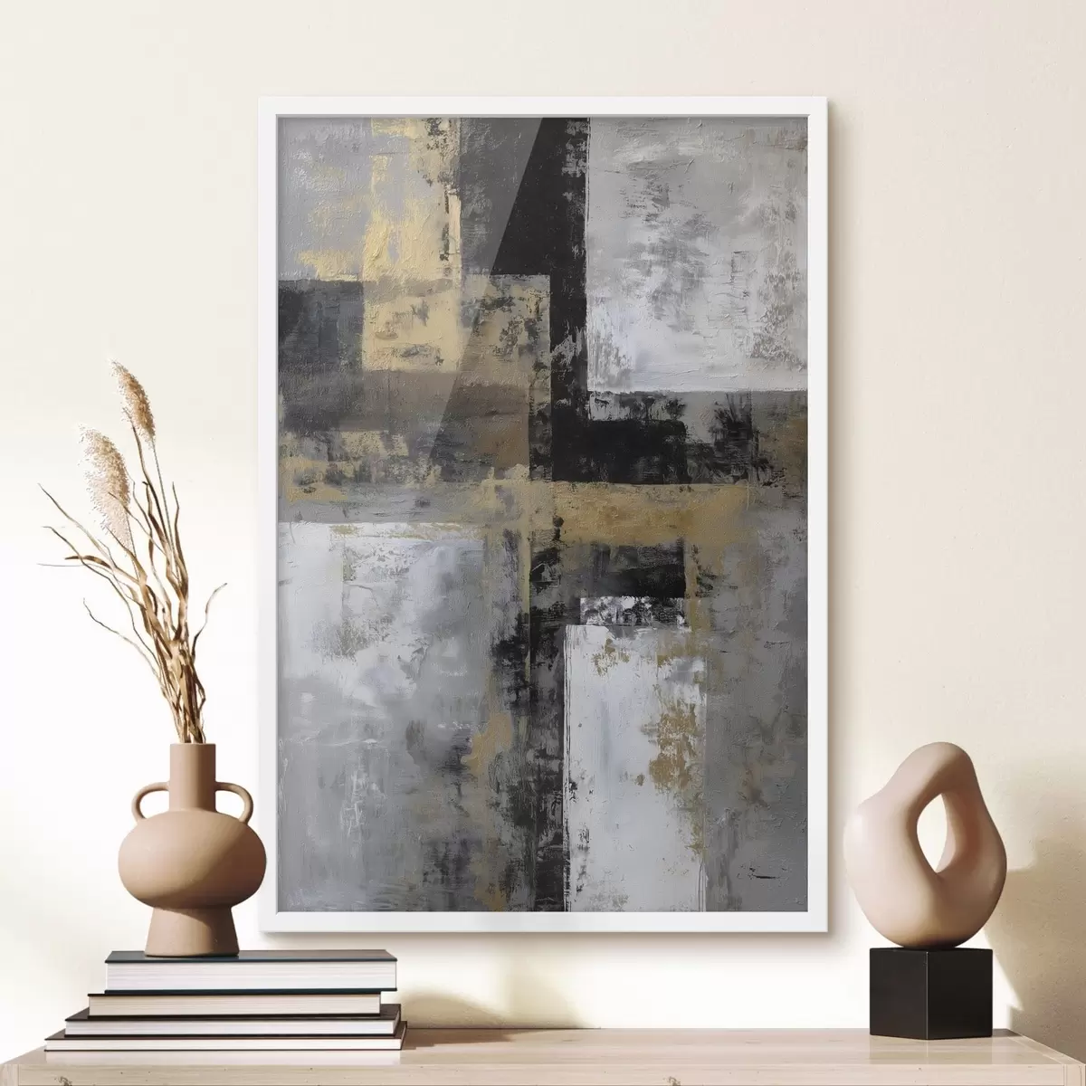 Poster abstraction texturale contemporaine dans des tons noirs, gris et blancs Nr f47139