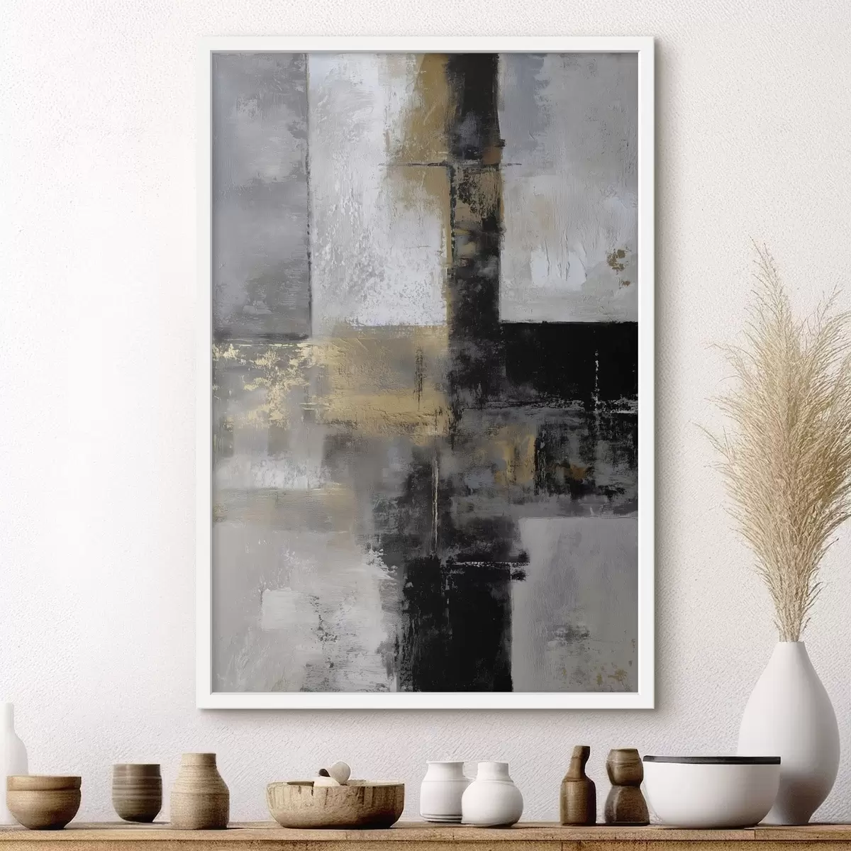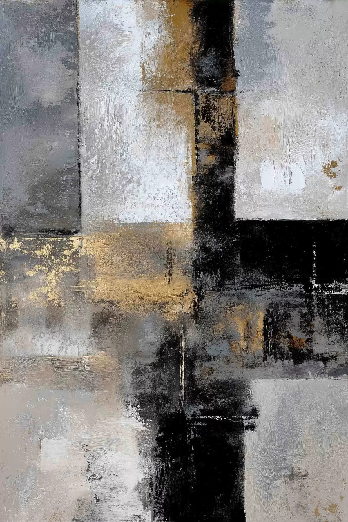 Poster abstraction texturale contemporaine dans des tons noirs, gris et blancs Nr f47140