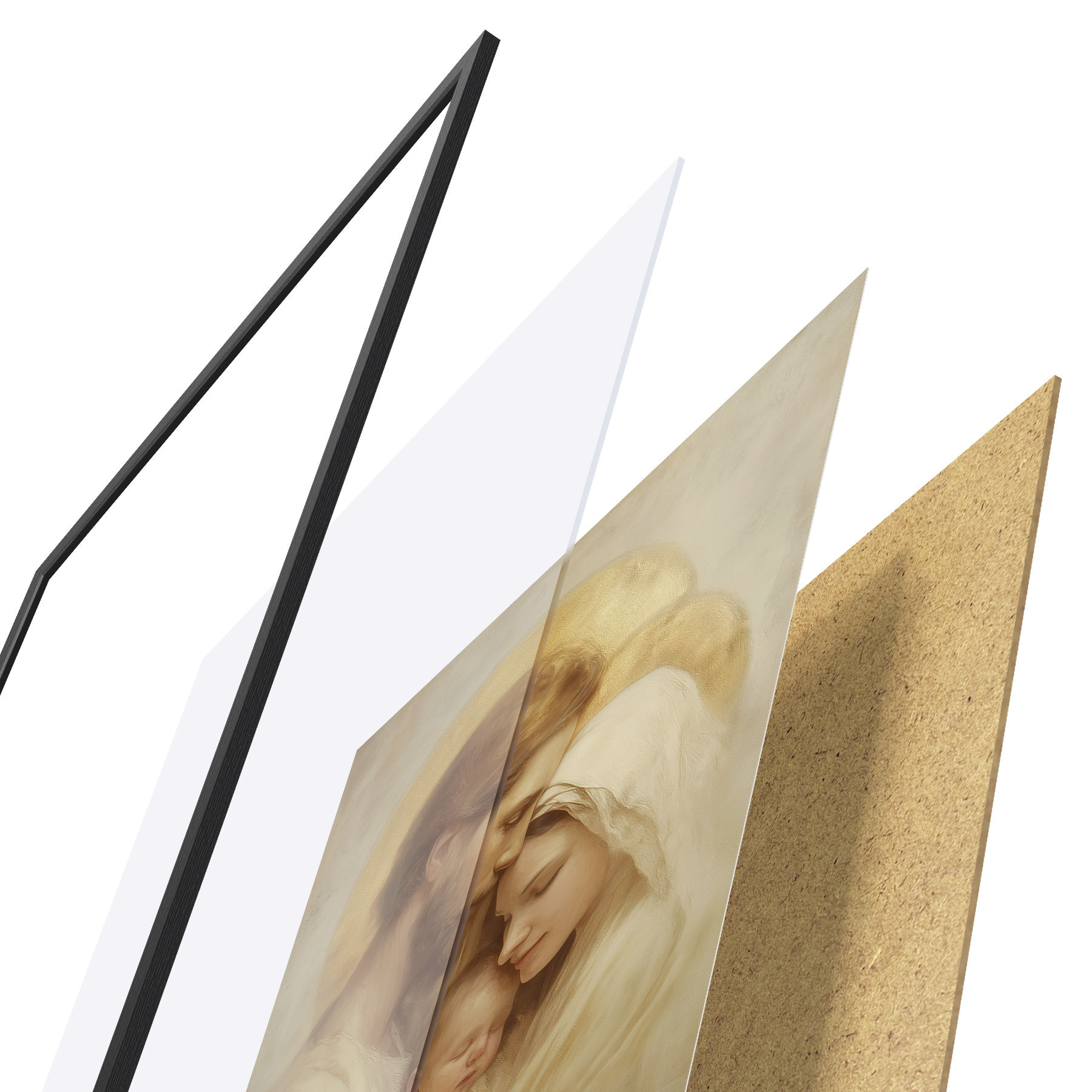 L’affiche encadrée est composée d’un cadre, d’un plexiglas, d’une image imprimée et d’un support en aggloméré. Elle est prête à être accrochée au mur grâce aux fixations situées à l’arrière.