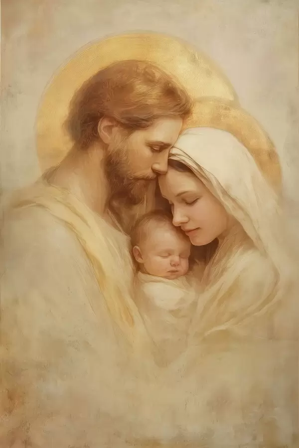 Poster La Vierge Marie et Joseph avec l'enfant Jésus dans le style d'une fresque ancienne Nr f47141