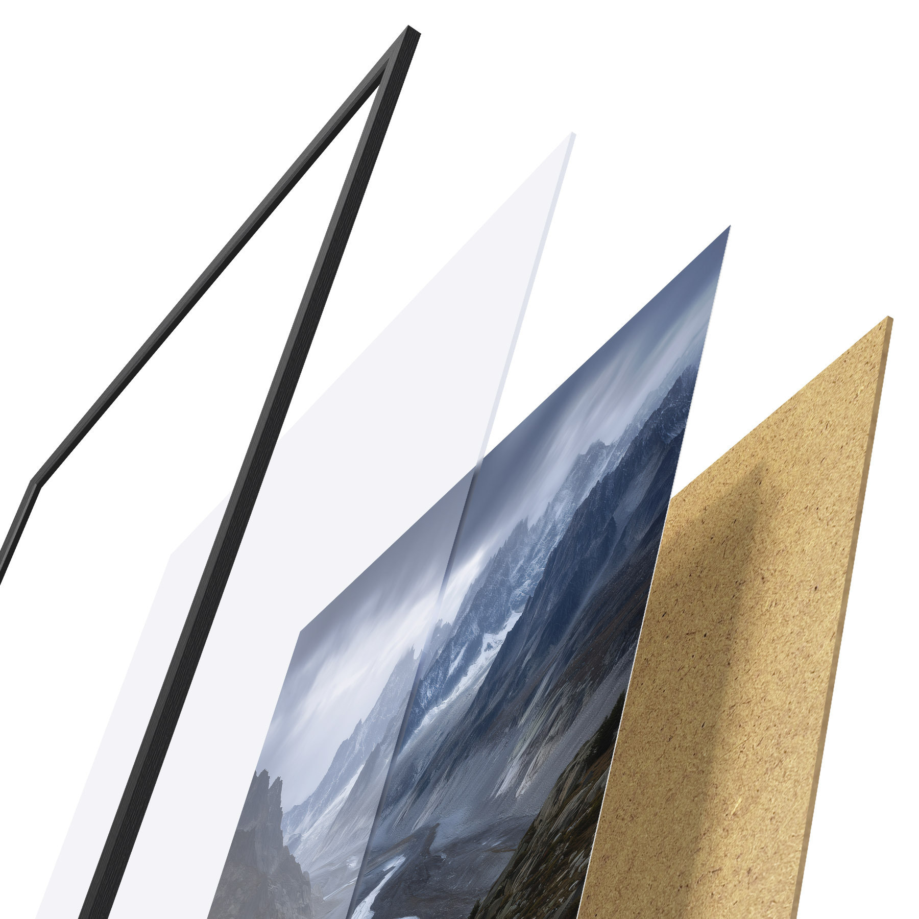 L’affiche encadrée est composée d’un cadre, d’un plexiglas, d’une image imprimée et d’un support en aggloméré. Elle est prête à être accrochée au mur grâce aux fixations situées à l’arrière.