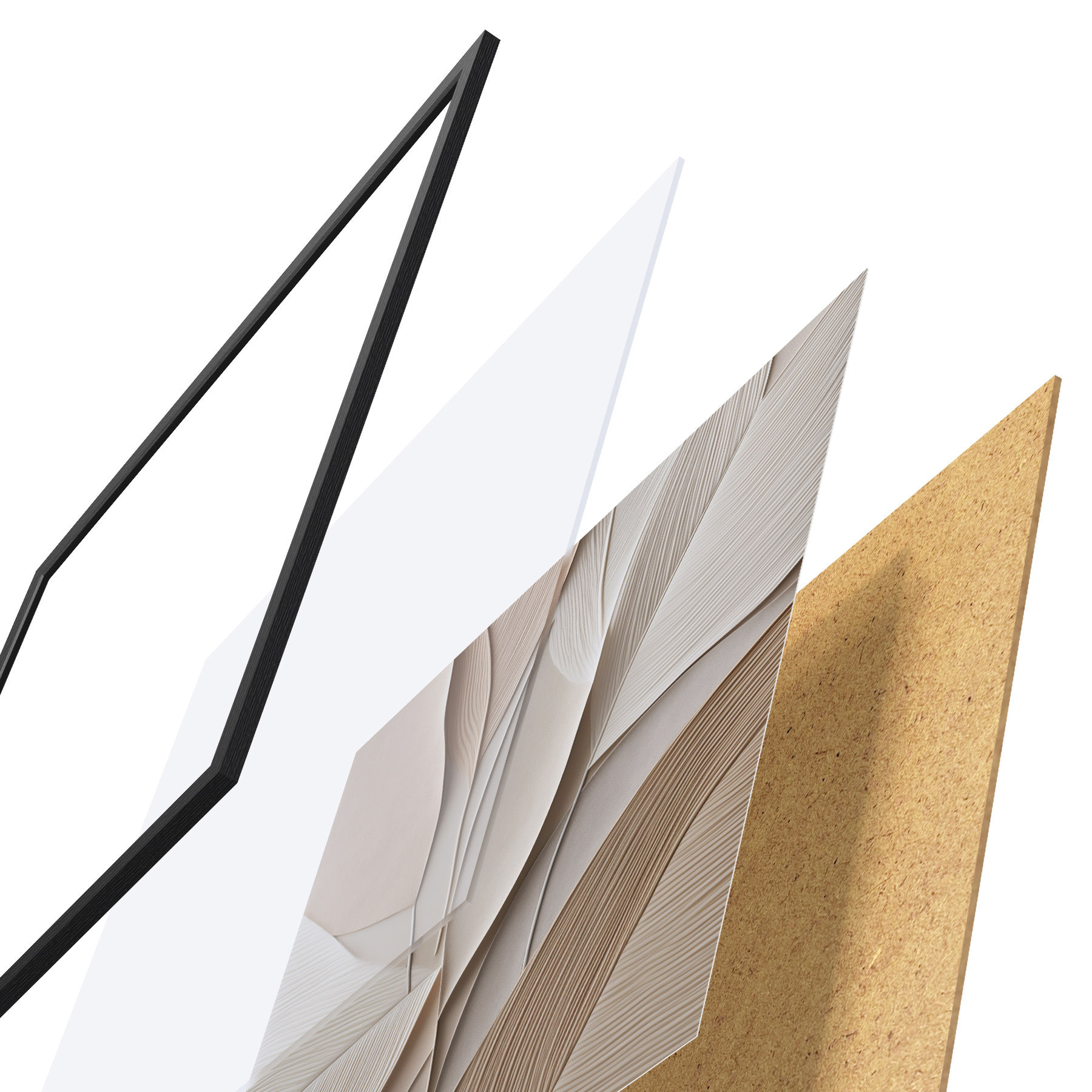 L’affiche encadrée est composée d’un cadre, d’un plexiglas, d’une image imprimée et d’un support en aggloméré. Elle est prête à être accrochée au mur grâce aux fixations situées à l’arrière.