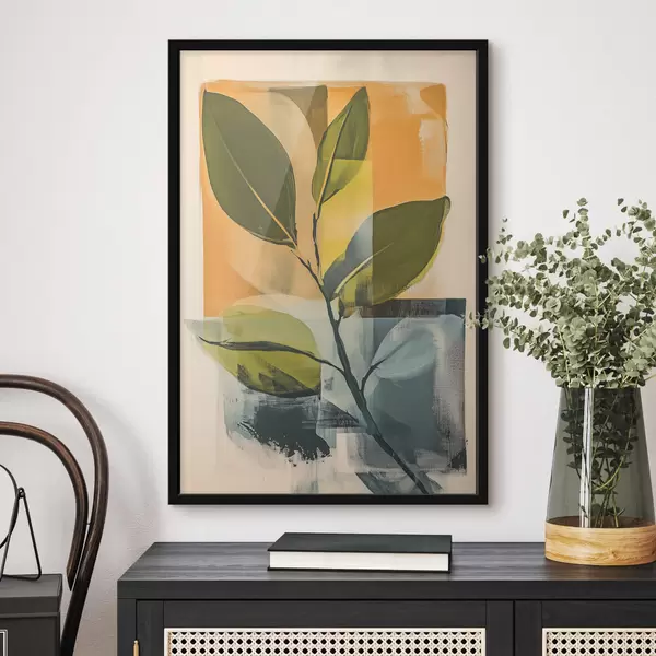 Poster Une branche de feuilles sur un fond abstrait f47250