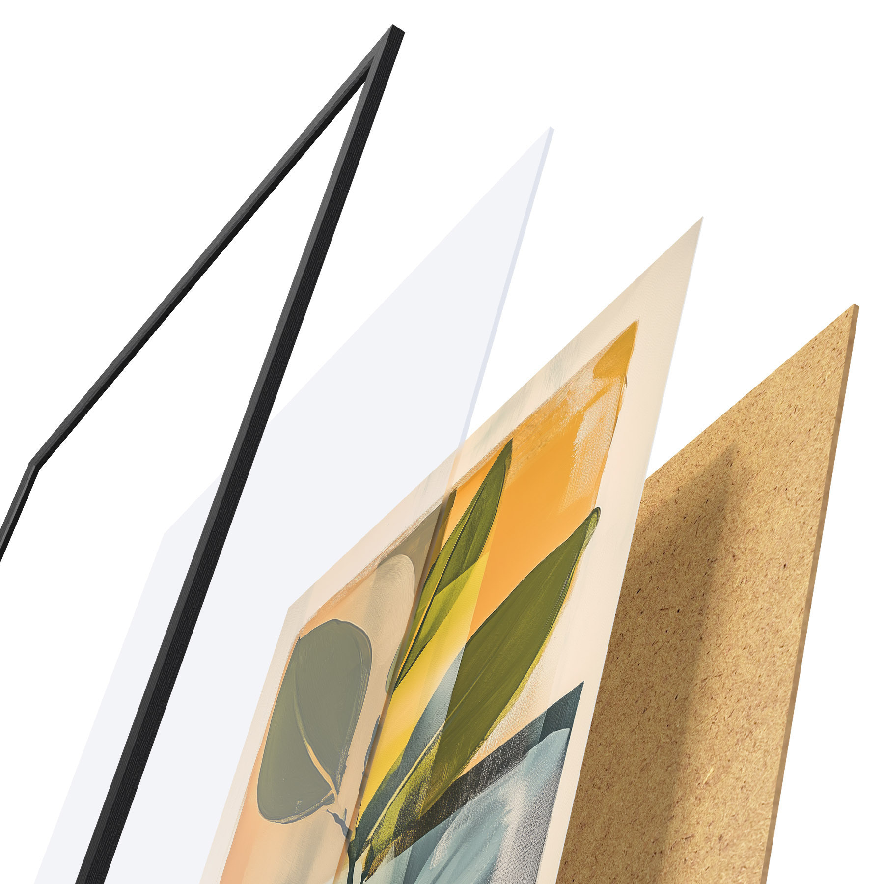 L’affiche encadrée est composée d’un cadre, d’un plexiglas, d’une image imprimée et d’un support en aggloméré. Elle est prête à être accrochée au mur grâce aux fixations situées à l’arrière.