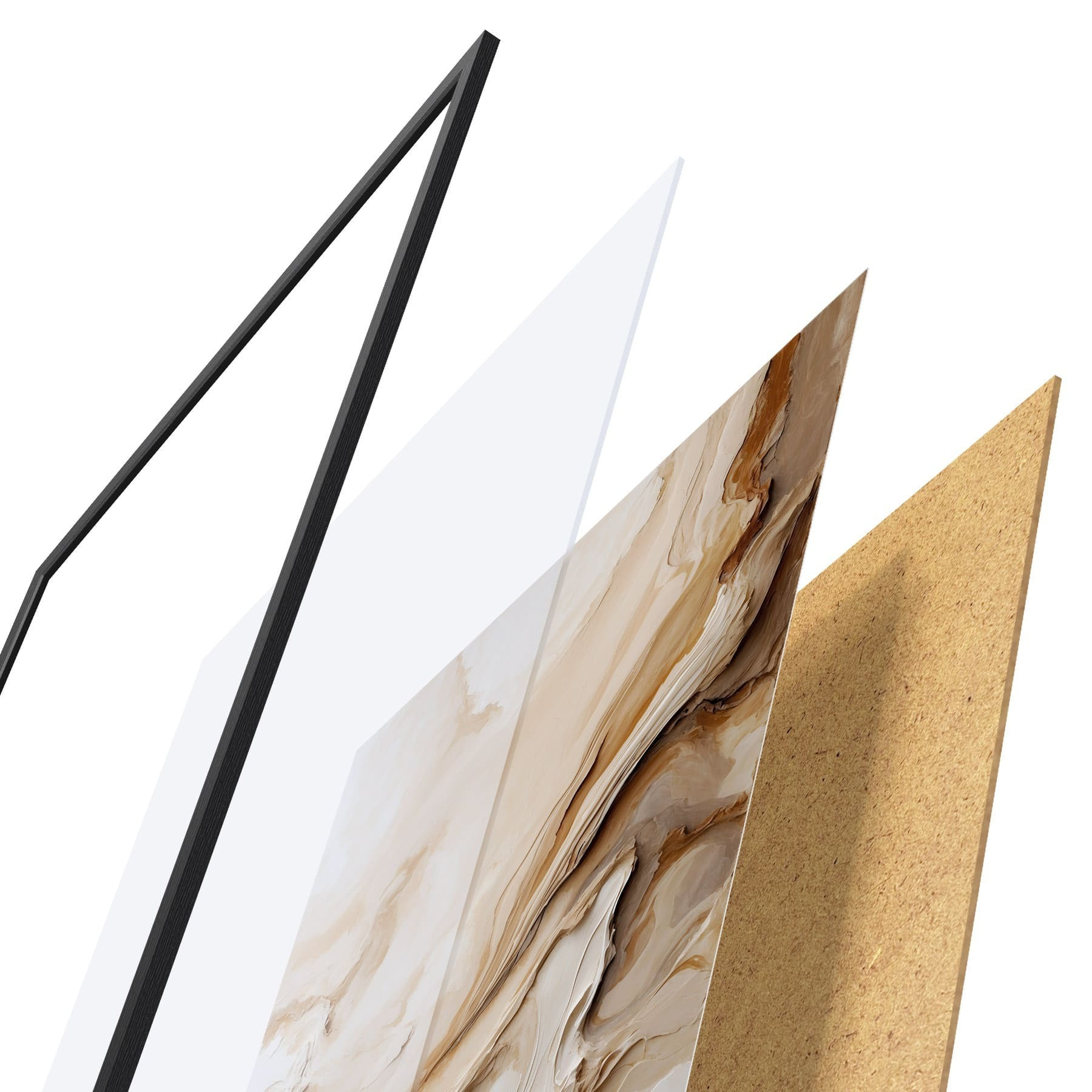L’affiche encadrée est composée d’un cadre, d’un plexiglas, d’une image imprimée et d’un support en aggloméré. Elle est prête à être accrochée au mur grâce aux fixations situées à l’arrière.