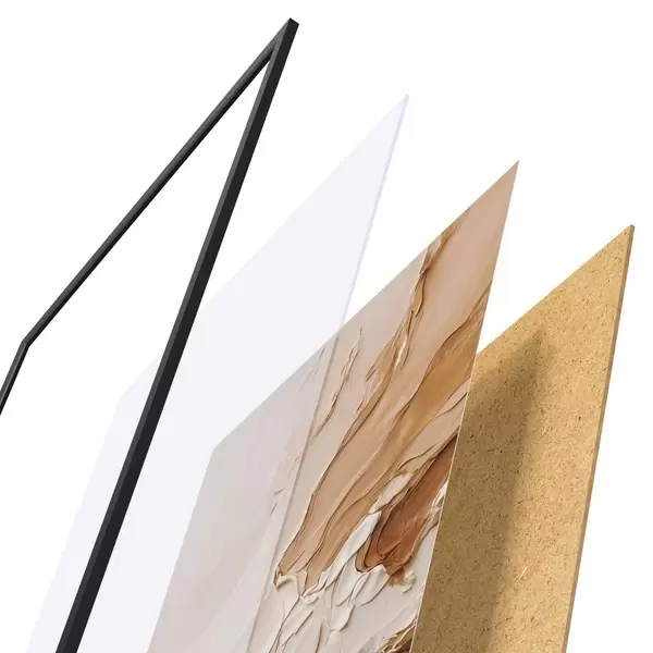 L’affiche encadrée est composée d’un cadre, d’un plexiglas, d’une image imprimée et d’un support en aggloméré. Elle est prête à être accrochée au mur grâce aux fixations situées à l’arrière.