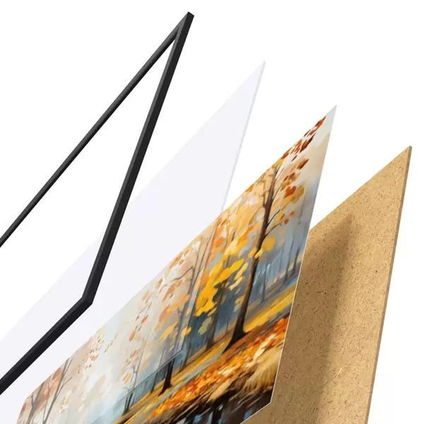 L’affiche encadrée est composée d’un cadre, d’un plexiglas, d’une image imprimée et d’un support en aggloméré. Elle est prête à être accrochée au mur grâce aux fixations situées à l’arrière.