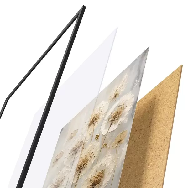 L’affiche encadrée est composée d’un cadre, d’un plexiglas, d’une image imprimée et d’un support en aggloméré. Elle est prête à être accrochée au mur grâce aux fixations situées à l’arrière.
