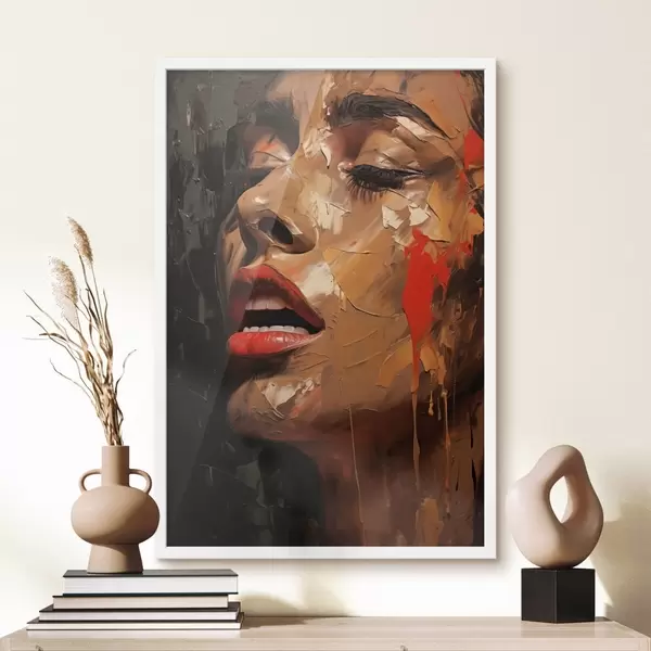 Poster Portrait féminin aux traits chaleureux et aux tons rouges Nr f47294