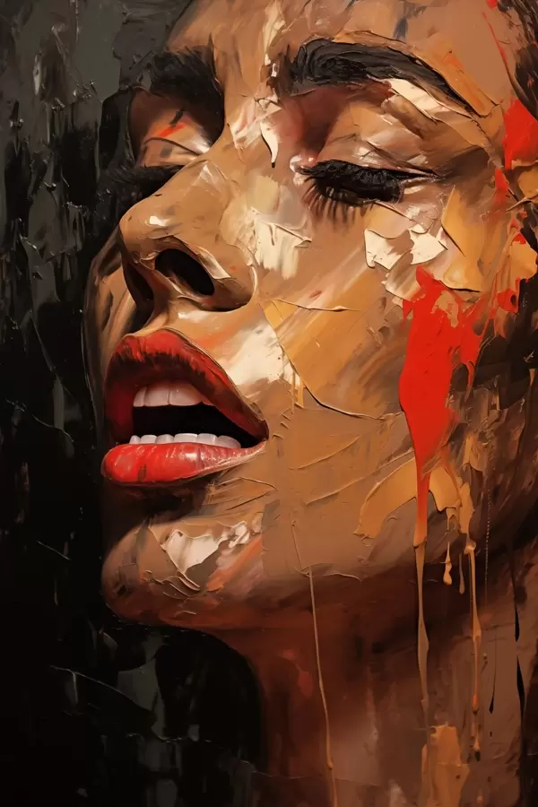 Poster Portrait féminin aux traits chaleureux et aux tons rouges Nr f47294