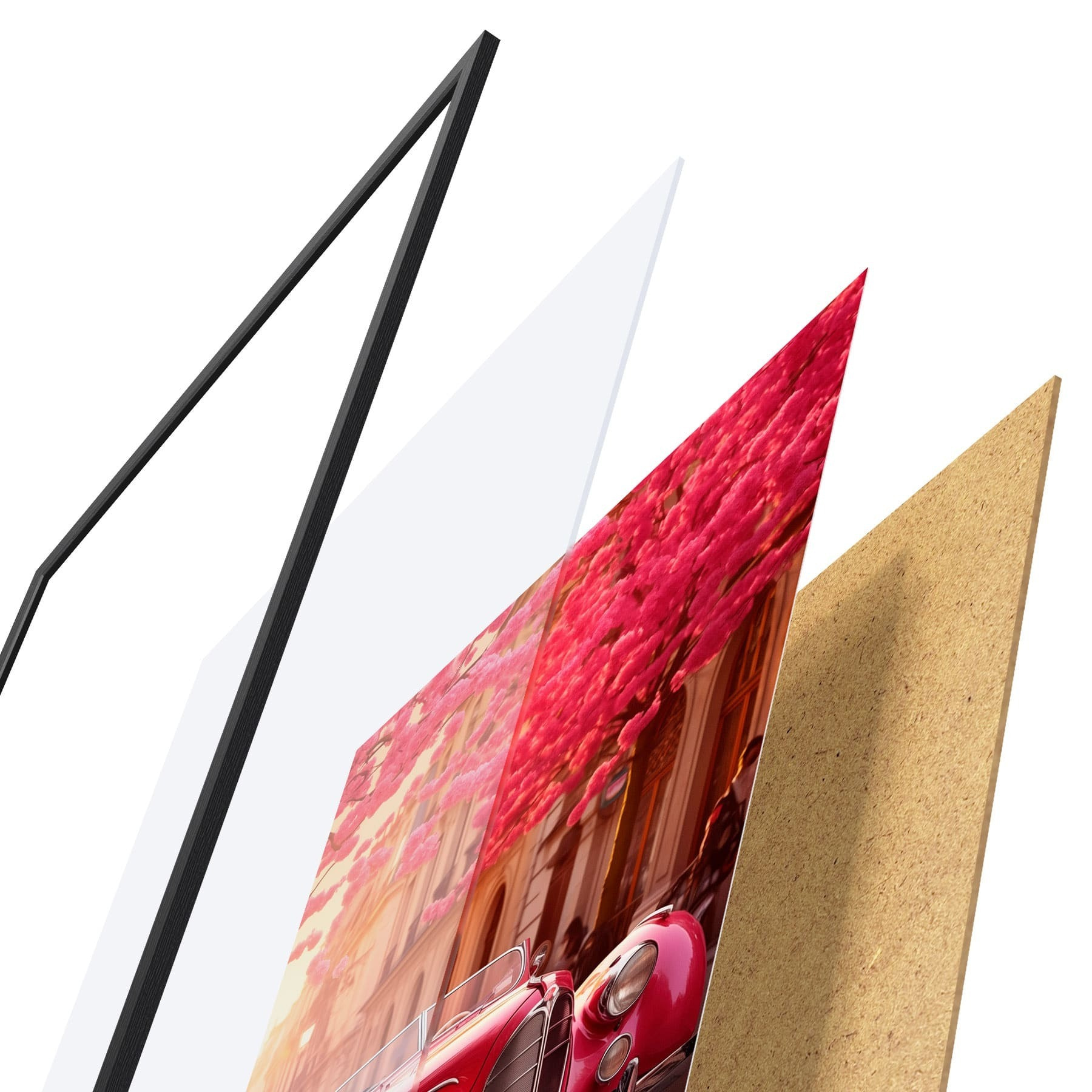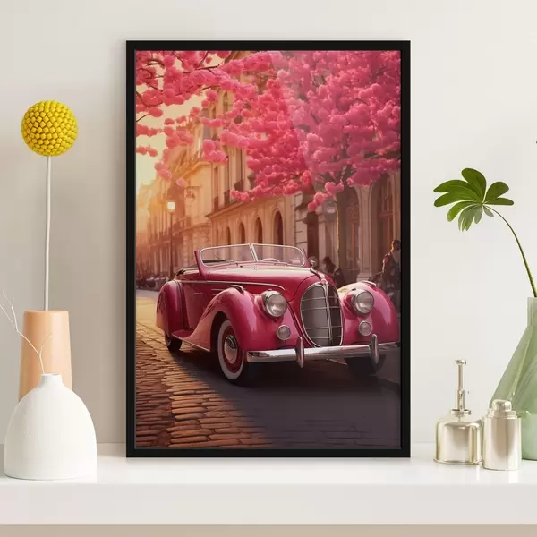 Poster Voiture rose sous les arbres en fleurs Nr f47295